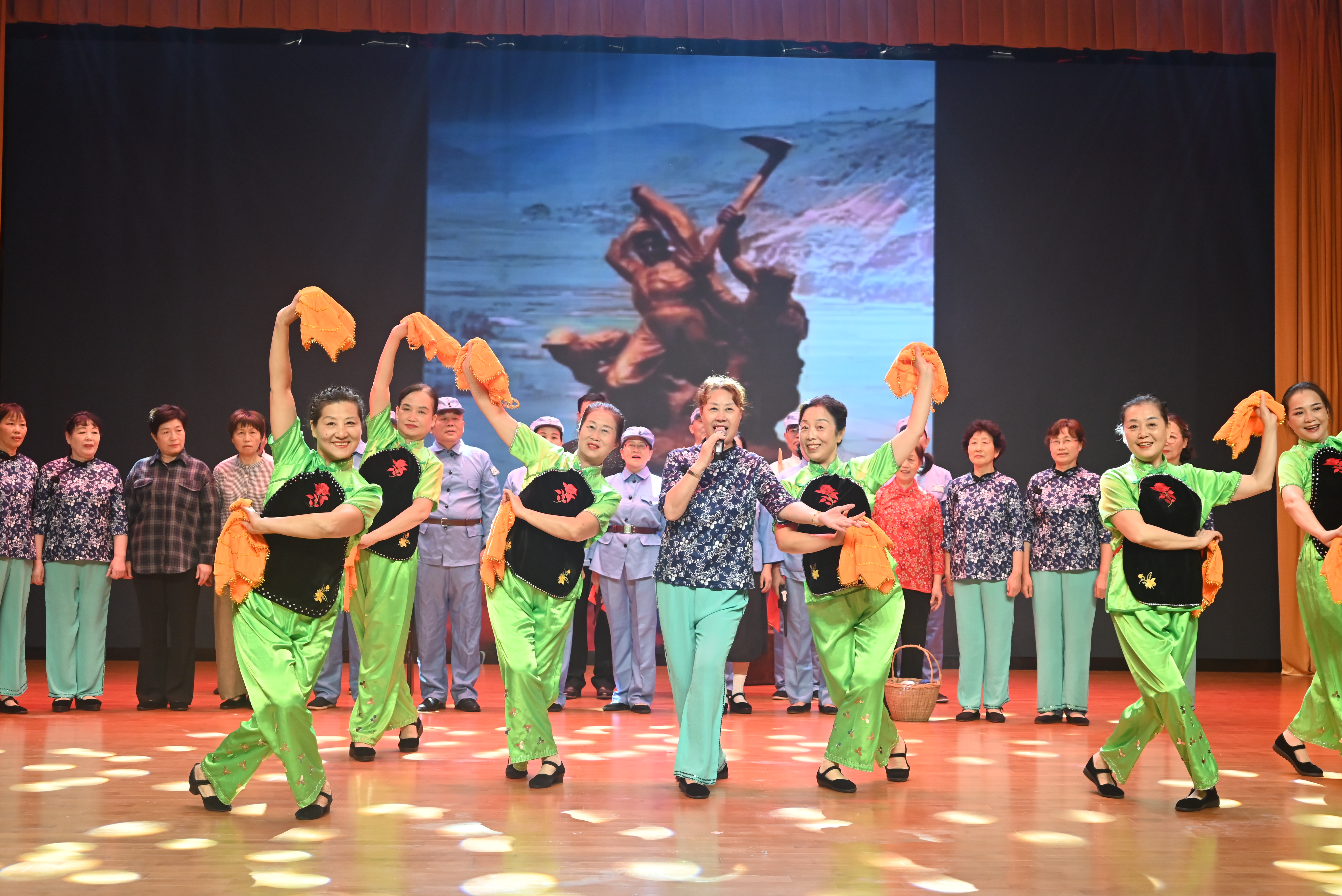 演出在激昂澎湃的《抗战歌曲大联唱》中拉开帷幕,锡阳红老战士艺术团的歌声瞬间将观众的思绪带回烽火岁月,彰显了老同志们不变的革命情怀。随后,节目精彩纷呈,形式多样。锡阳红舞蹈队的古典舞《千古一醉》舞姿曼妙,尽显千古风雅;诗词楹联社蒋健安带来的京剧《沙家浜》选段铿锵有力,展现了保卫山河的坚定信念;区老年大学的电吹管齐奏《祝福祖国》,则以新颖的形式奏响了对新时代最深情的礼赞。