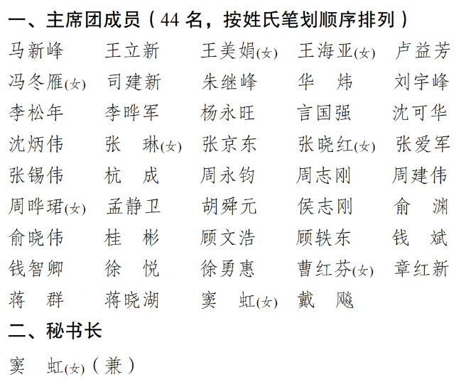 无锡市锡山区第五届人民代表大会 第五次会议主席团成员和秘书长名单 (2026年1月27日区五届人大五次会议预备会议通过)
