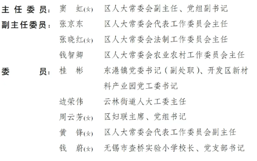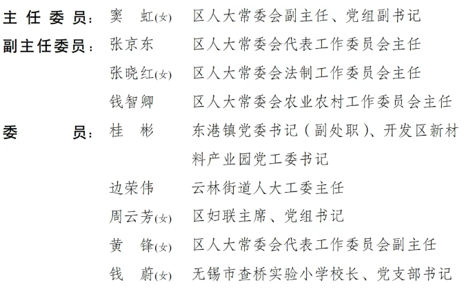 无锡市锡山区第五届人民代表大会 第五次会议议案审查委员会 主任委员、副主任委员、委员名单 (2026年1月27日区五届人大五次会议预备会议通过) (9名)