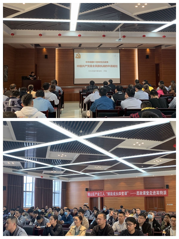 课堂上,无锡市委党校许阳教授为英特派全体职工讲述了抗战的艰苦卓绝,展示了中国共产党在全民族团结抗战中的中流砥柱作用,阐释了伟大的抗战精神,使职工们对抗日战争有了更深刻的认识。